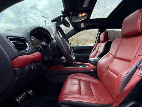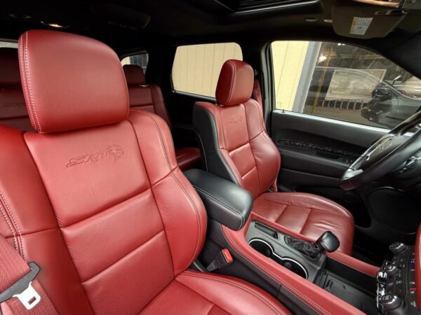 The 2021 Dodge Durango SRT Hellcat serves as a high-performance variant of the brand’s three-row SUV, distinguished by its supercharged 6.2-liter HEMI V8 engine. Factory-rated at 710 horsepower and 640 lb-ft of torque, this powertrain is managed by an eight-speed shiftable automatic transmission and an on-demand all-wheel-drive system, providing significant output for a vehicle in this segment.