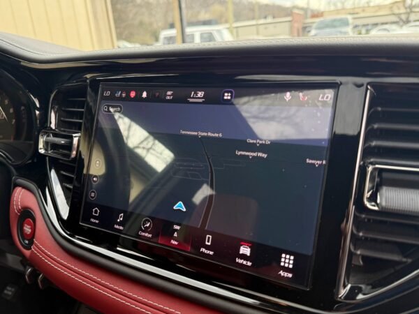The vehicle is well-equipped for both performance and utility, featuring the Trailer-Tow Group IV, which includes a Class IV receiver hitch and a trailer brake controller. Driver-assistance technology is provided by the Technology Group, which adds adaptive cruise control with stop, advanced brake assist, lane-departure warning, and full-speed forward-collision warning. Further convenience is provided by a power sunroof, heated and ventilated front seats, a heated steering wheel, and a remote start system.